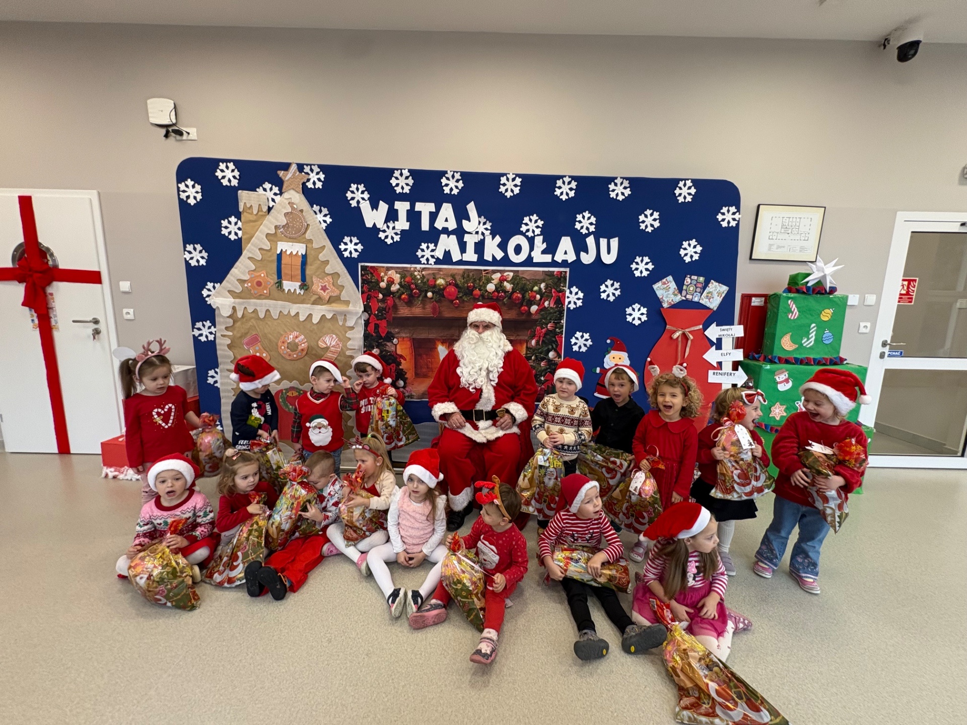 Dziś w naszej grupie „Cukiereczki” wydarzyło się coś wyjątkowego – odwiedził nas sam Święty Mikołaj! Dzieci z wielką radością i zaangażowaniem przygotowały dla niego krótkie występy: zaśpiewały piosenkę połączoną z tańcem, zaprezentowały wierszyk, a także wręczyły własnoręcznie wykonane, kolorowe laurki.