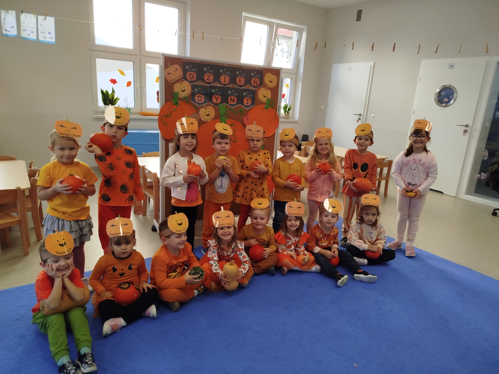 Święto Dyni to wspaniała okazja na spędzenie dnia w przedszkolu inaczej niż zwykle. Dzieci przyszły do przedszkola ubrane na pomarańczowo, aby zaakcentować, że ten dzień będzie wyjątkowy. Dzień Dyni jest okazją do wspólnej zabawy przedszkolaków pełnej pomarańczowego koloru, smaków, zapachów oraz rozwijających zabaw, które na długo zapadają w pamięci dzieci.