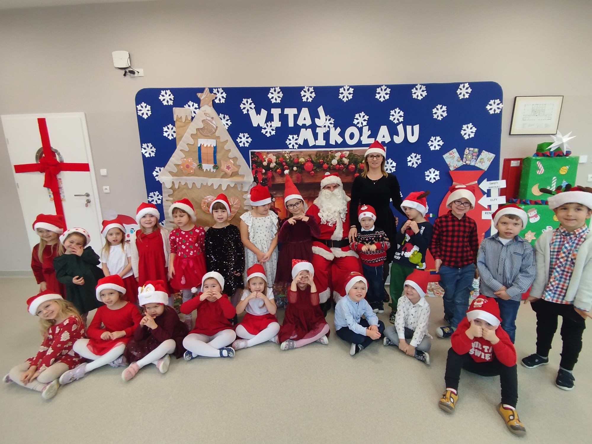 W naszym przedszkolu zapanowała niezwykła atmosfera, gdy nadszedł długo wyczekiwany dzień wizyty Świętego Mikołaja. Dzieci z niecierpliwością wypatrywały Świętego Mikołaja i z ogromnym zaangażowaniem przygotowywały się na to wyjątkowe spotkanie. Jednym z najważniejszych etapów było przygotowanie laurek oraz nauka piosenki specjalnie dla Niego. Każde dziecko otrzymało paczkę oraz ciepłe słowo od wyjątkowego gościa. Wszystko zostało uwiecznione na pamiątkowych zdjęciach, które będą wspaniałą pamiątka dla każdego. Wizyta Świętego Mikołaja była dla wszystkich niezapomnianym przeżyciem. Ten dzień na długo pozostanie w pamięci przedszkolaków, jako pełen radości i uśmiechów.