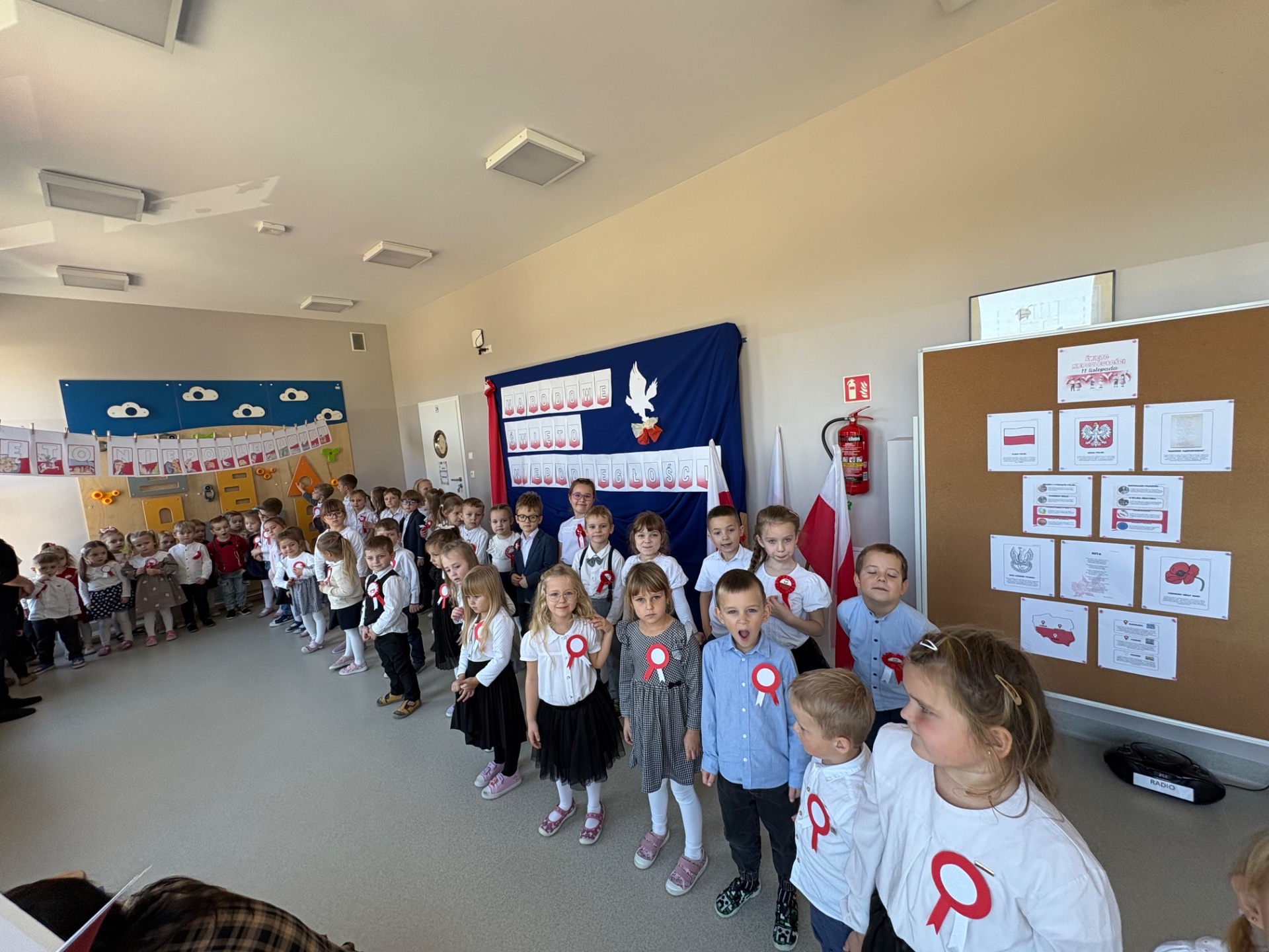 Na zakończenie dzieci obejrzały krótki film edukacyjny poświęcony historii odzyskania przez Polskę niepodległości. Cała uroczystość przebiegła w podniosłej atmosferze – dzieci zachowały powagę i z zaangażowaniem uczestniczyły w tym wyjątkowym wydarzeniu.
